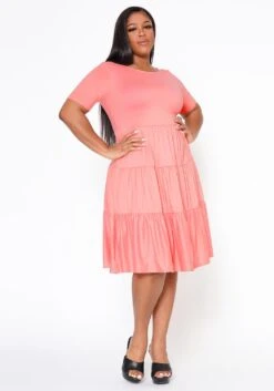 Casual plus size women’s mini dress in fit to flare design, tube fitting, pocket ascent and comfy lightweight material.