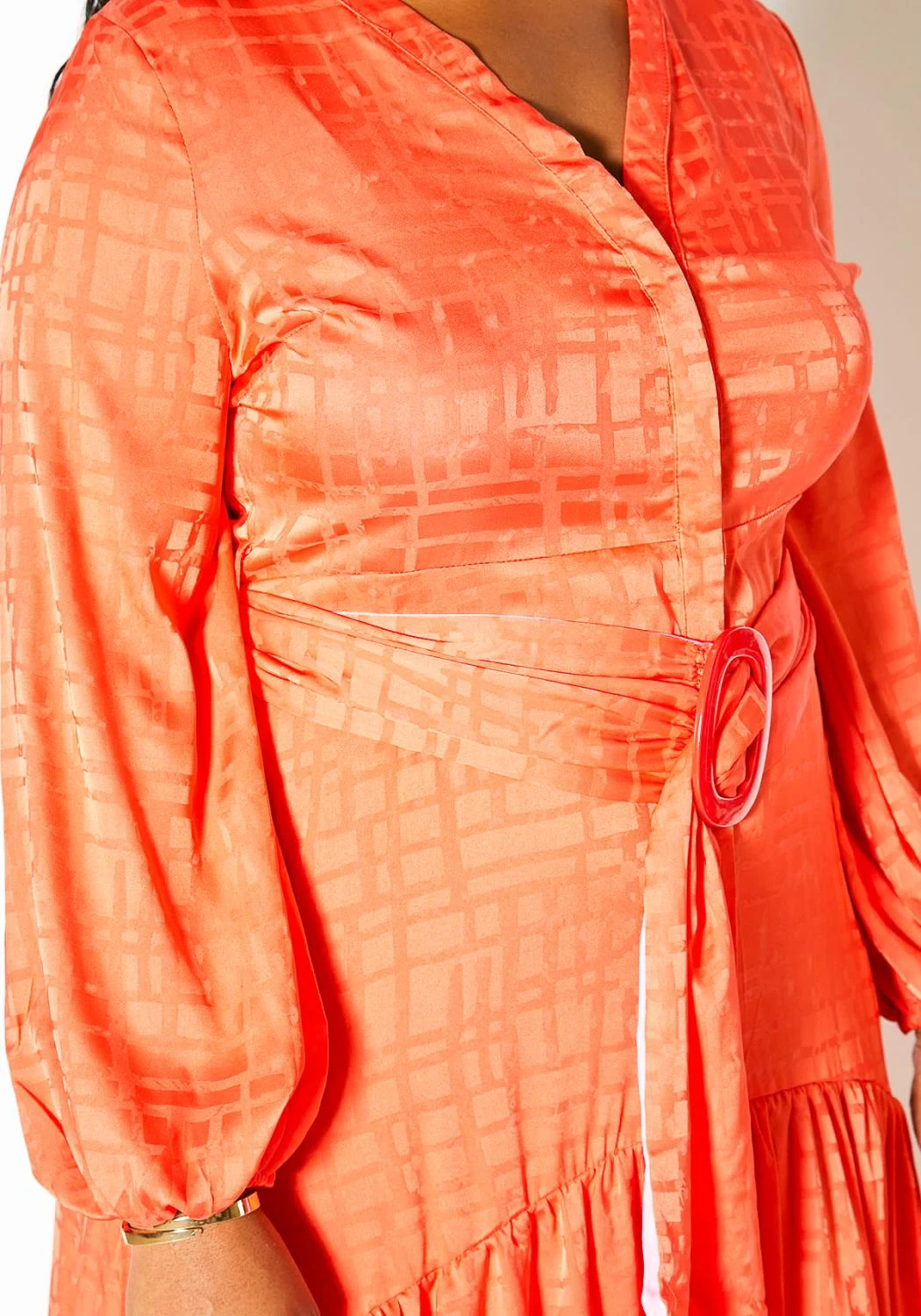 Plus size button up maxi dress with belt and pleated hem.