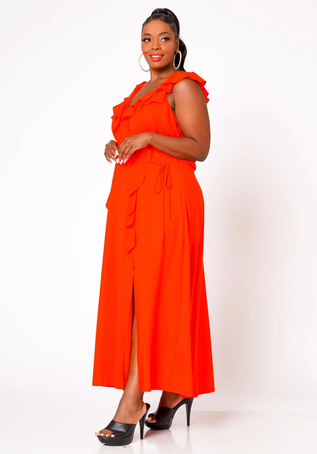 Nurode Plus Size Ruffle Trim Wrapped Maxi Dress