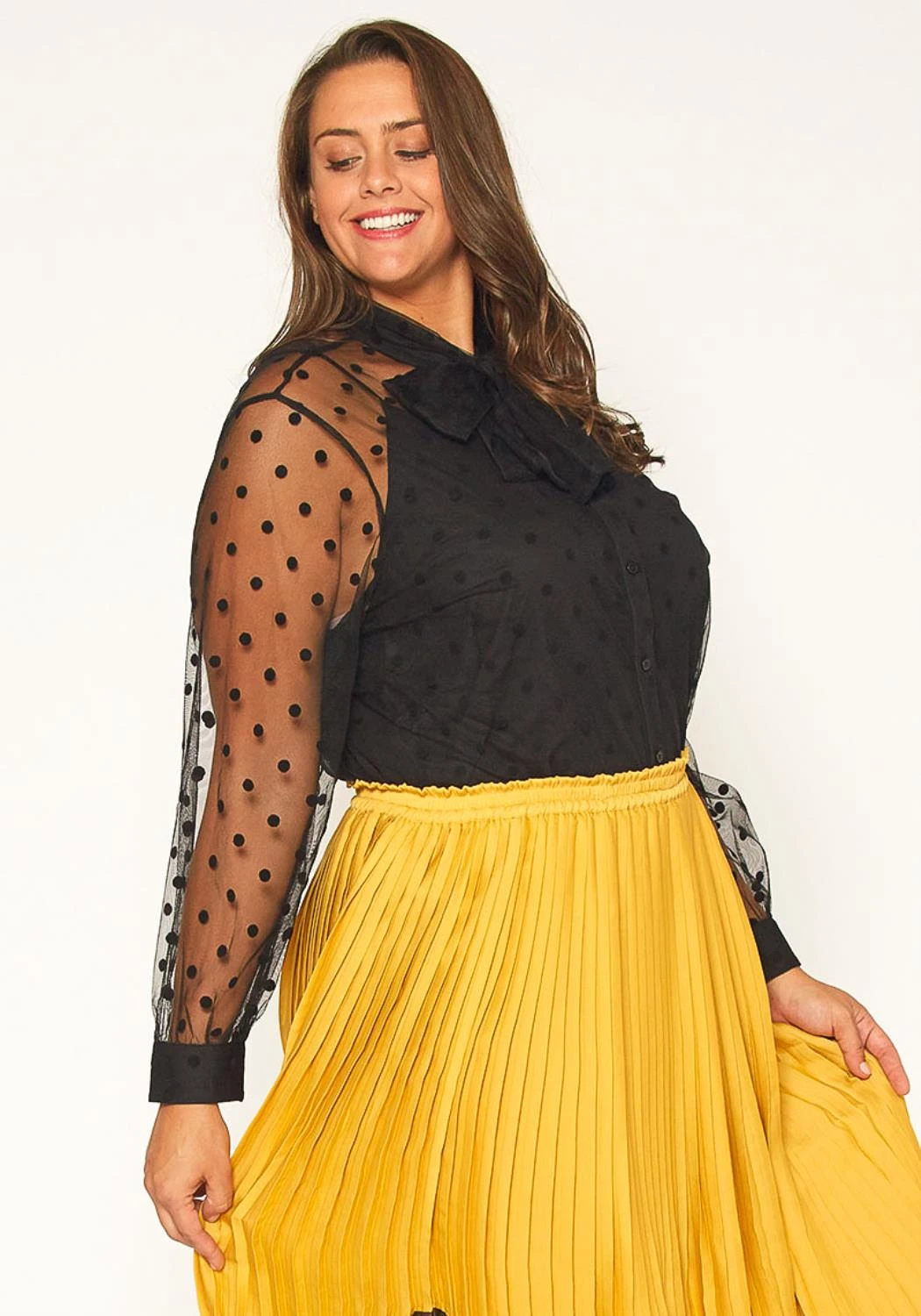 Pleione Plus Size Polkadot Mesh Blouse With Cami