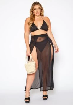 Simple plus size high waist pencil skirt with a ruched trim that ends with a slit.