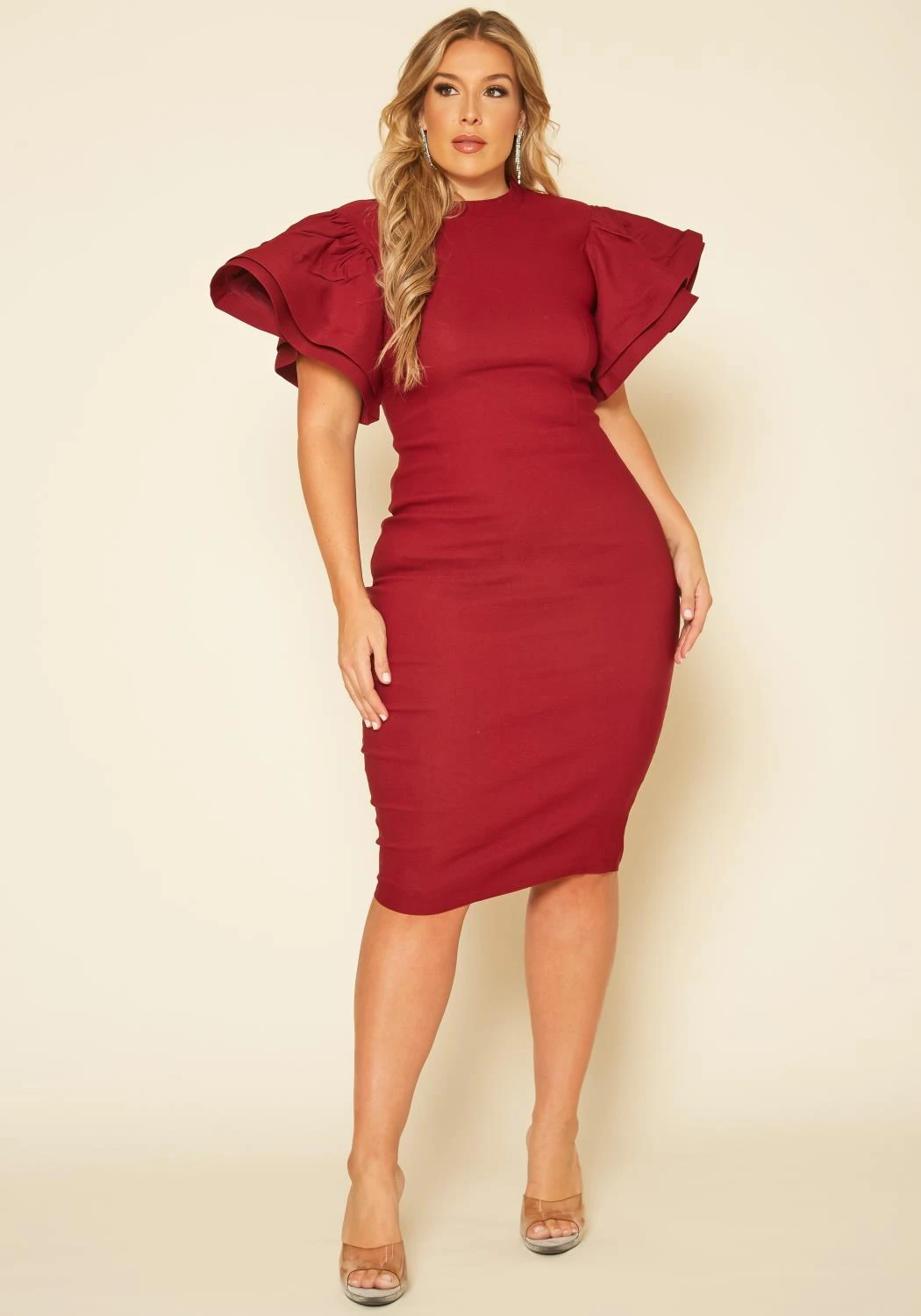 This Plus Size Angel Sleeve Midi Dress is a stunning addition to any wardrobe. The dress features elegant angel flare short sleeves and a round neck style, making it perfect for both formal occasions and everyday wear. The bodycon fitting is designed to flatter your curves, while the back button closure adds a touch of sophistication to the dress. Made with high-quality materials, this midi dress is comfortable and durable, ensuring that you can wear it time and time again. Add this beautiful dress to your collection today and feel confident and stylish wherever you go.