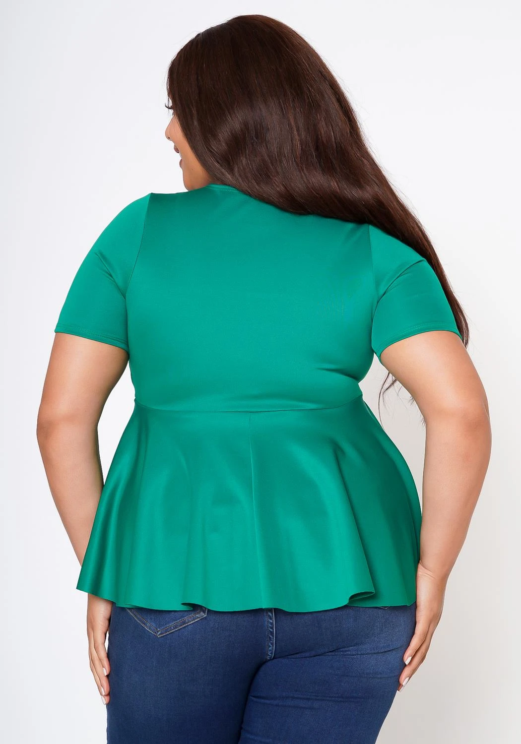 Lovely blouse made with high-quality scuba fabric. This top is designed to accentuate your figure while the flared peplum hem add a touch of elegance to your look. Not to mention, the dress has a floral decor detail for extra compliments.