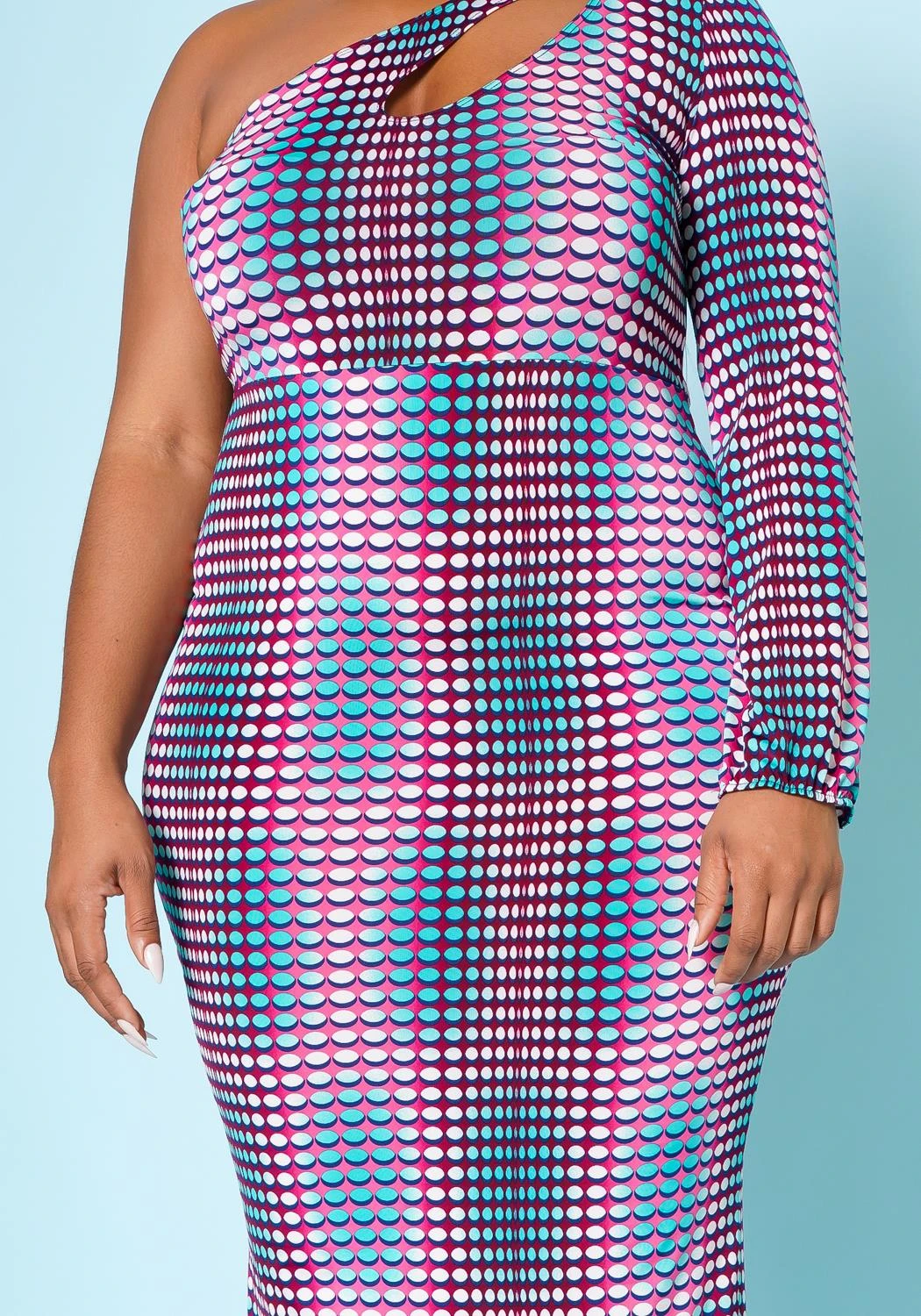 A unique addition to your wardrobe. The dress features a gorgeous multi-color abstract dotted pattern that makes it stand out from the crowd.