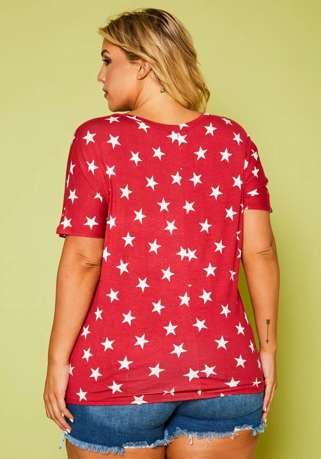 Casual plus size women’s t-shirt in star print , round-neck style and short sleeves.