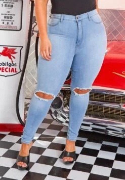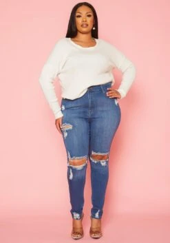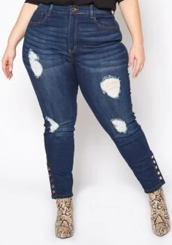 Imagine a smooth velvet touch when wearing our sleek skinny jeans for plus size women. Features a high rise style, functional pockets and belt loops. *Belt chain not included.