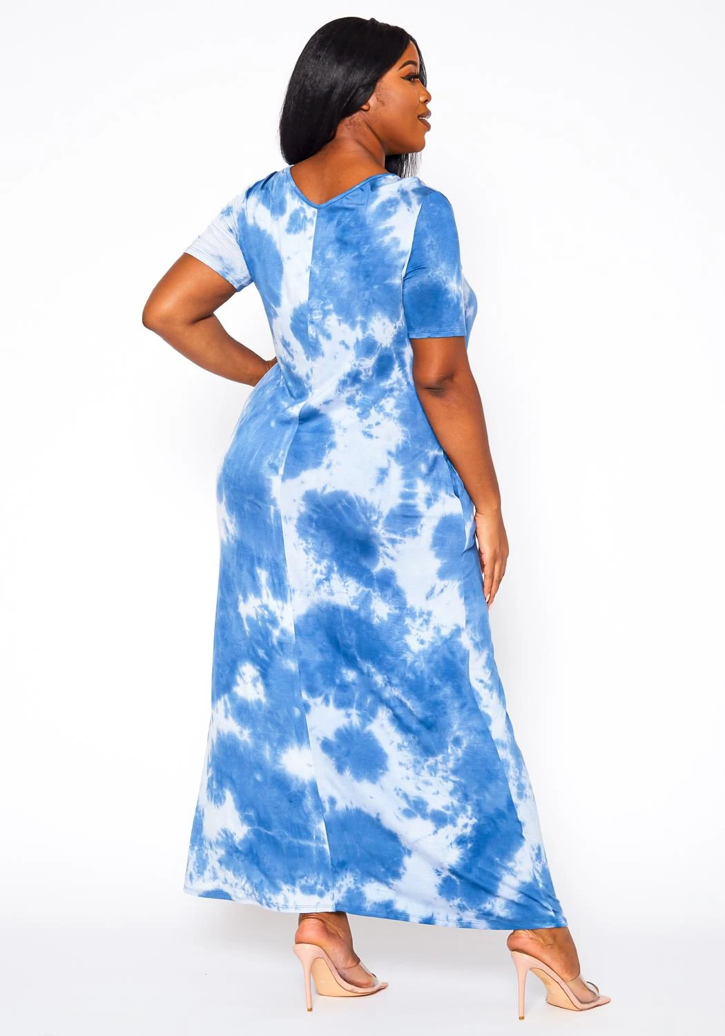 Super casual plus size women’s maxi dress which features functional side pockets, v-neck style and short fitted sleeves.