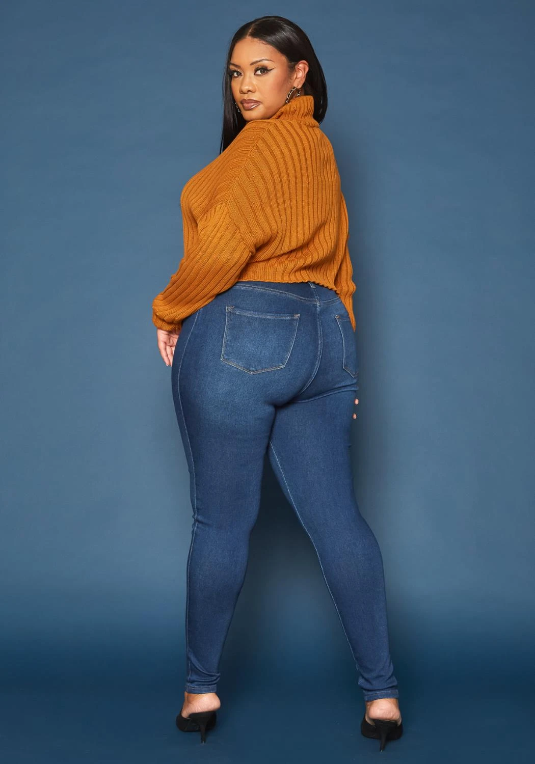 Asoph x Vibrant plus size women’s basic everyday skinny denim jeans in high waisted style plus includes belt loop holes and pockets.