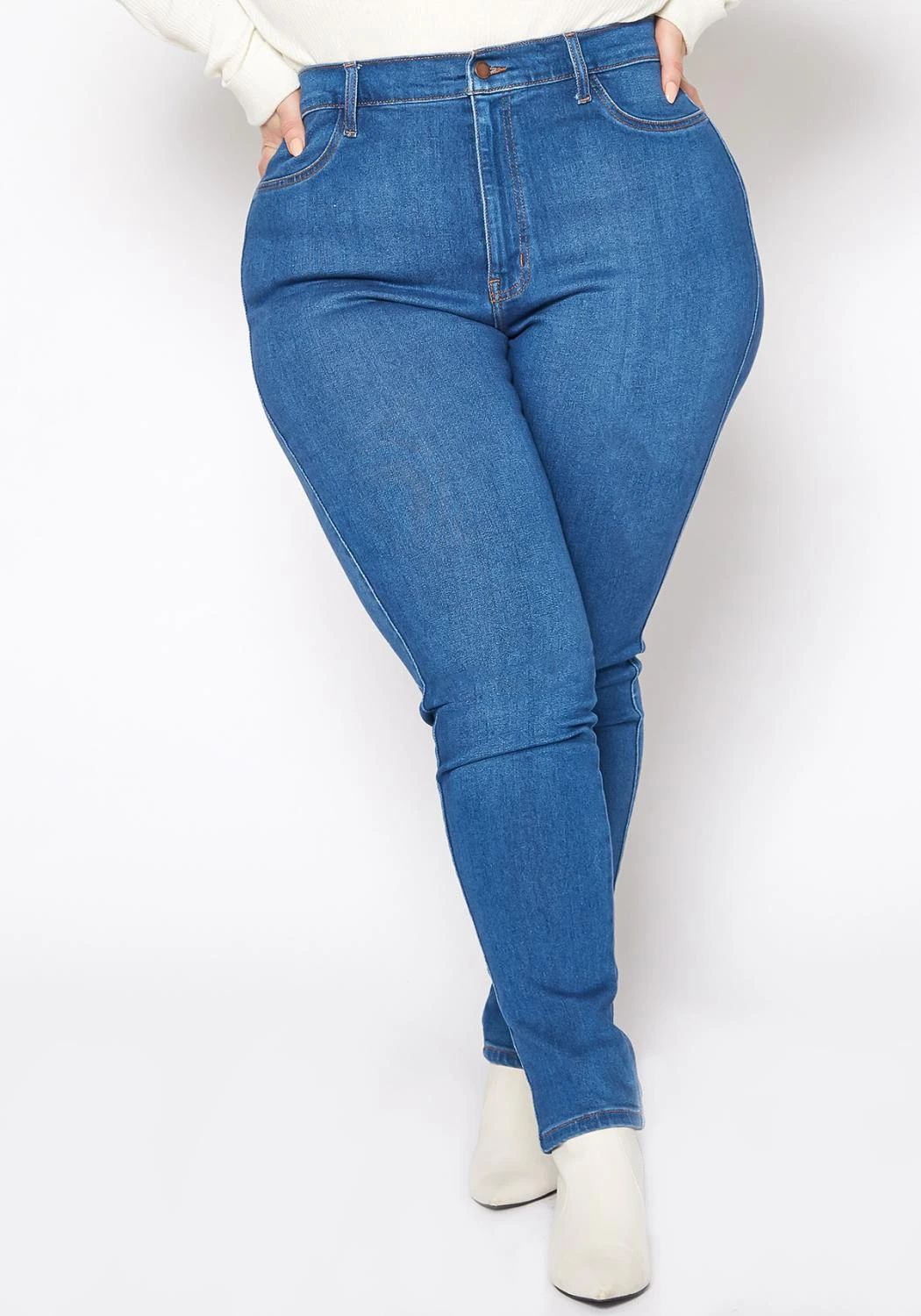 Asoph x Vibrant plus size women’s basic everyday skinny denim jeans in high waisted style plus includes belt loop holes and pockets.